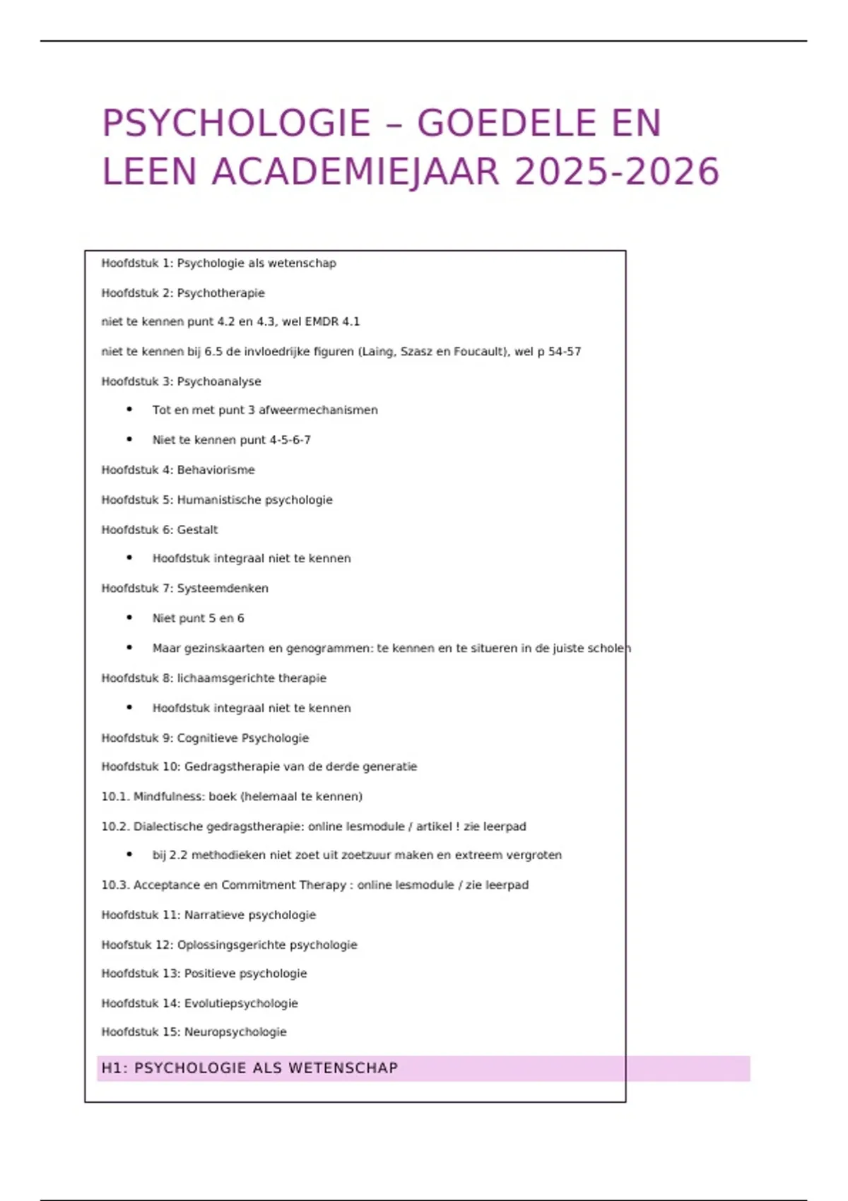H1: PSYCHOLOGIE ALS WETENSCHAP