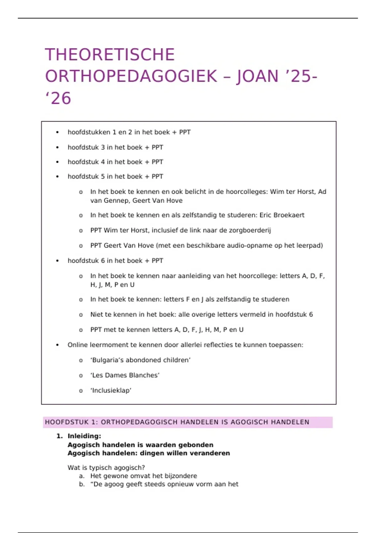 HOOFDSTUK 1: ORTHOPEDAGOGISCH HANDELEN IS AGOGISCH HANDELEN