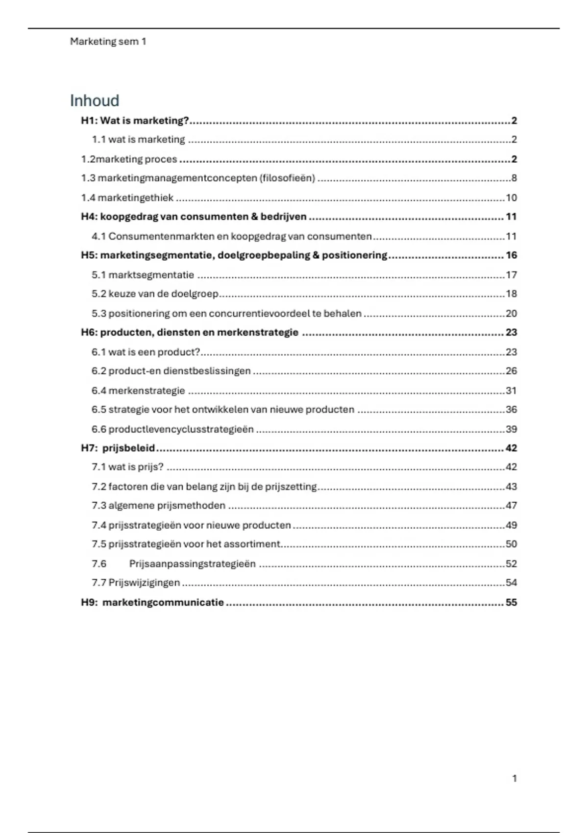 H1: Wat is marketing? ................................................................................................. 2