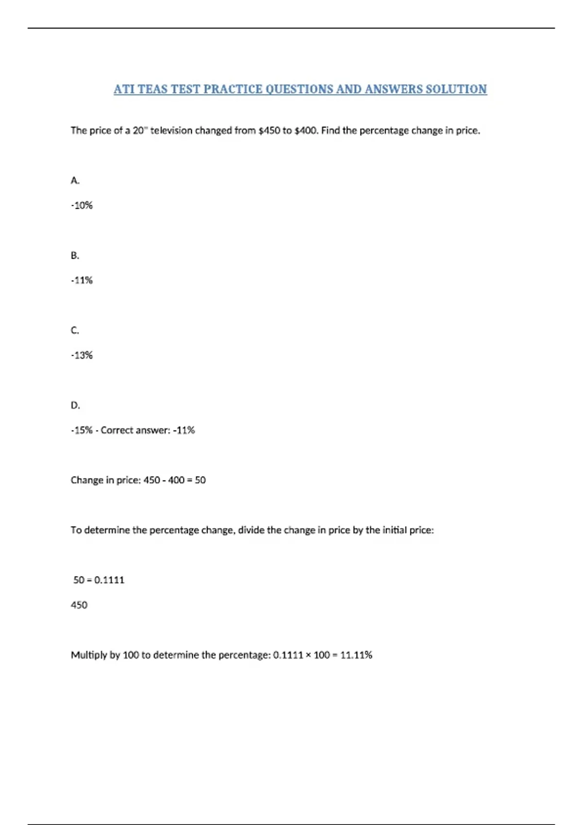 ATI TEAS Test Practice Questions and Answers Solution Study Guide 2025/ 2026