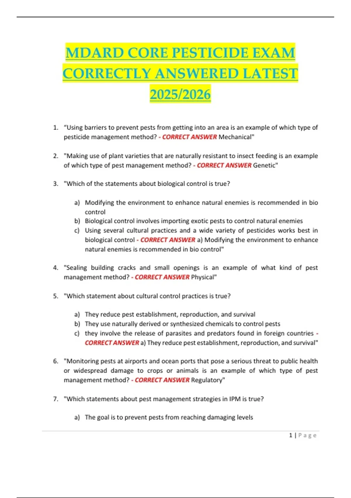 MDARD Core Pesticide Exam Study Guide 2025/2026 – Practice Questions & Answers