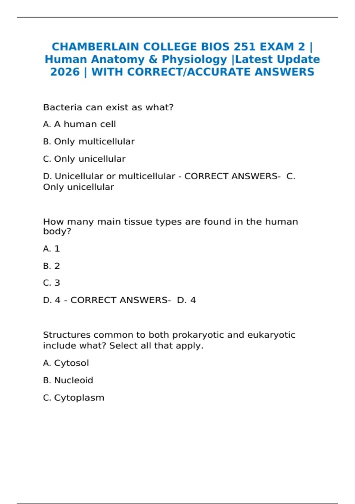 CHAMBERLAIN COLLEGE BIOS 251 EXAM 2 |
