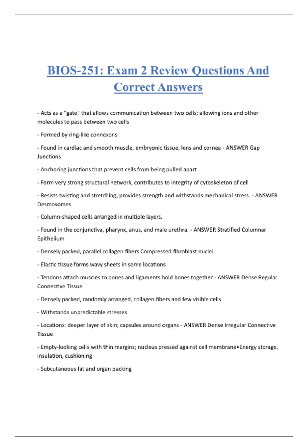 BIOS-251: Exam 2 Review Questions And
