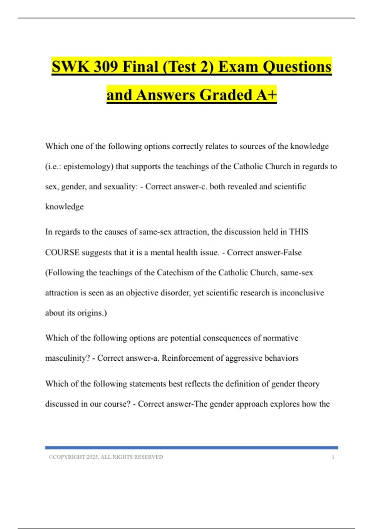 SWK 309 Final (Test 2) Exam Questions and Answers Graded A+