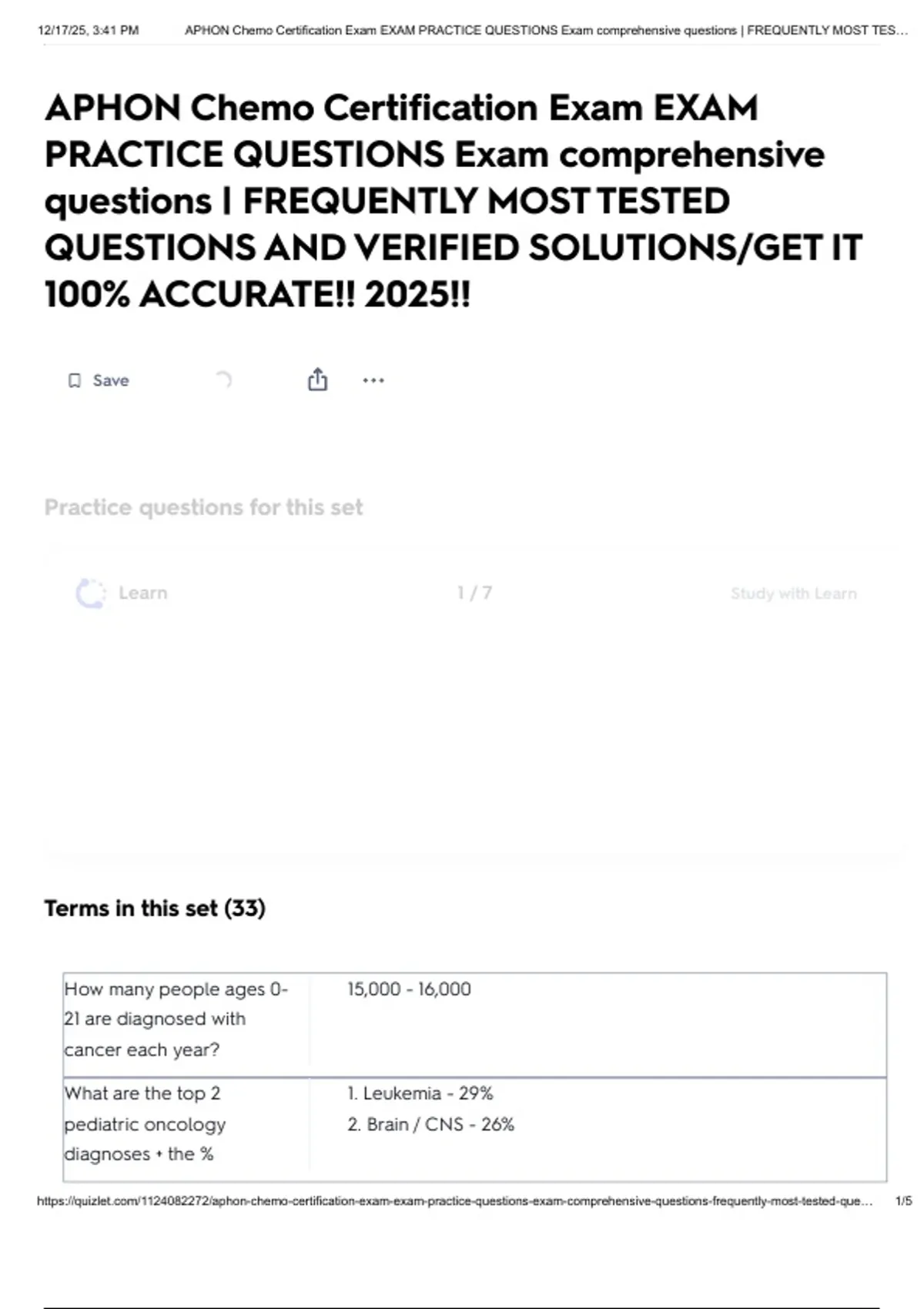 , 12/17/25, 3:41 PM APHON Chemo Certification Exam EXAM PRACTICE QUESTIONS Exam comprehensive questions | FREQUENTLY MOST TES…