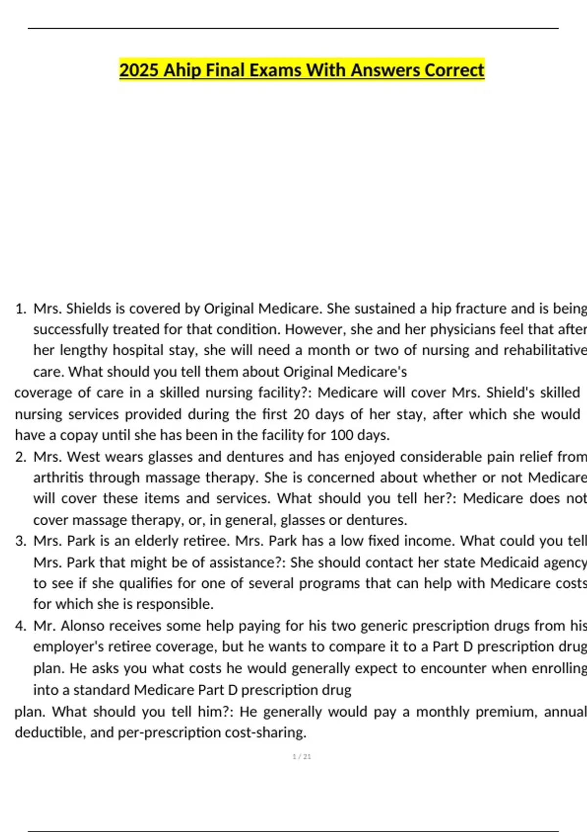 1. Mrs. Shields is covered by Original Medicare. She sustained a hip fracture and is being