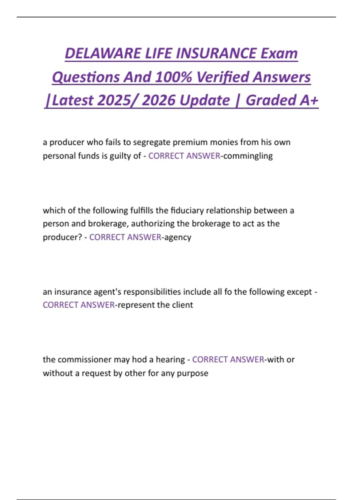 insureds receive their money? - CORRECT ANSWER-the Delaware life