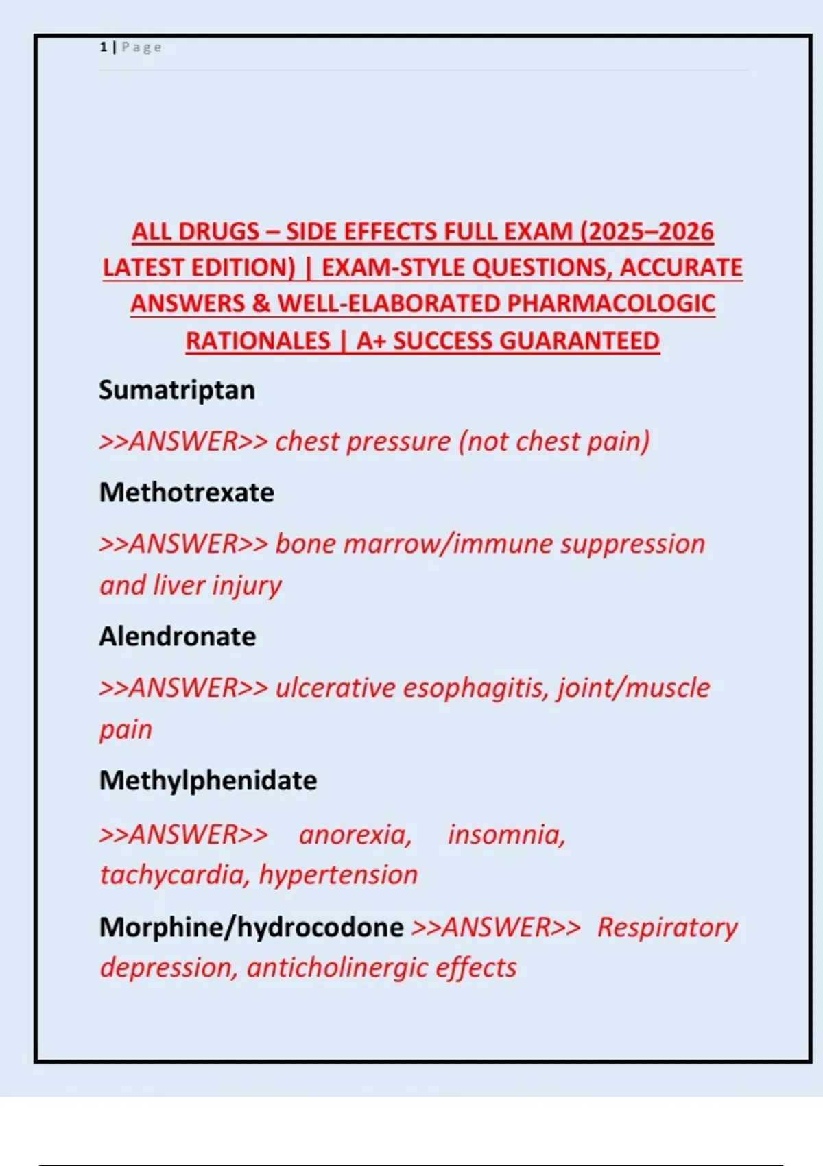 ALL DRUGS – SIDE EFFECTS FULL EXAM (2025–2026