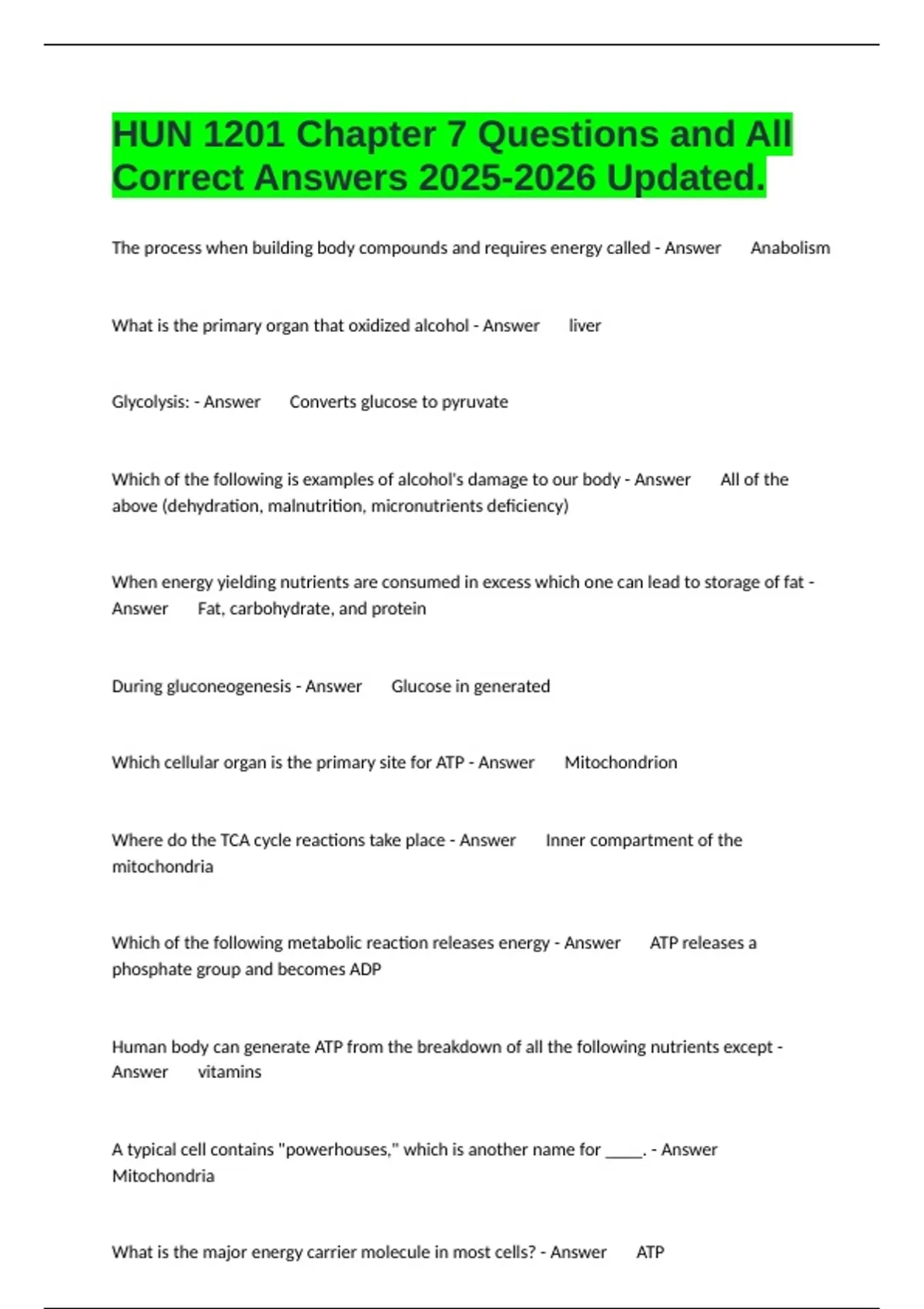 HUN 1201 Chapter 7 Questions and All Correct Answers Updated.