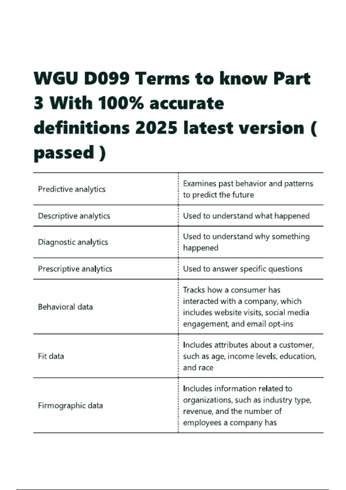 WGU D099 Terms to know Part 3 With 100- accurate definitions 2025 latest version ( passed )