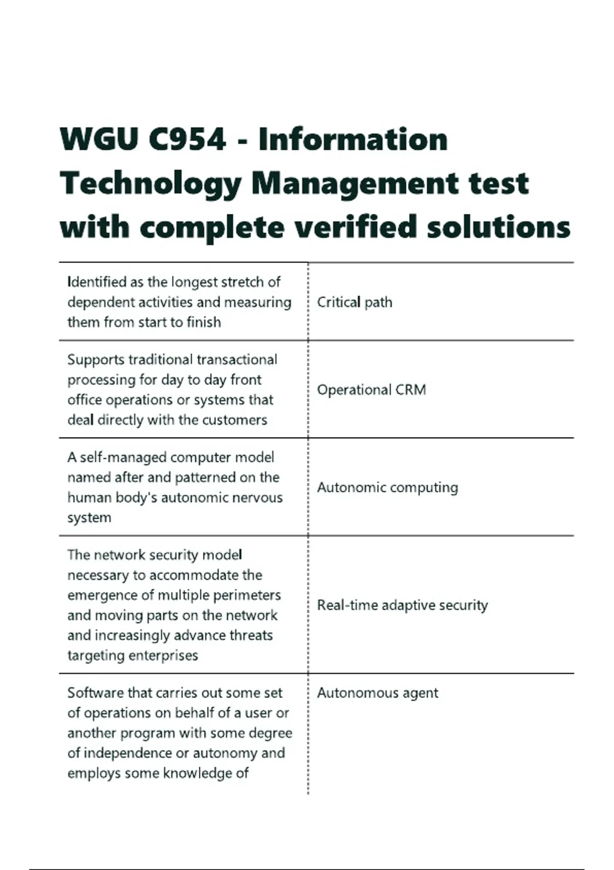 WGU C954 - Information Technology Management test with complete verified solutions.