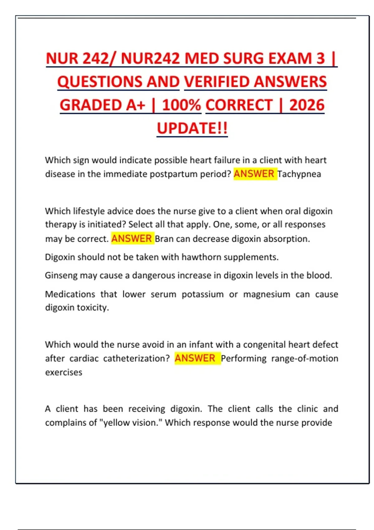 QUESTIONS AND VERIFIED ANSWERS