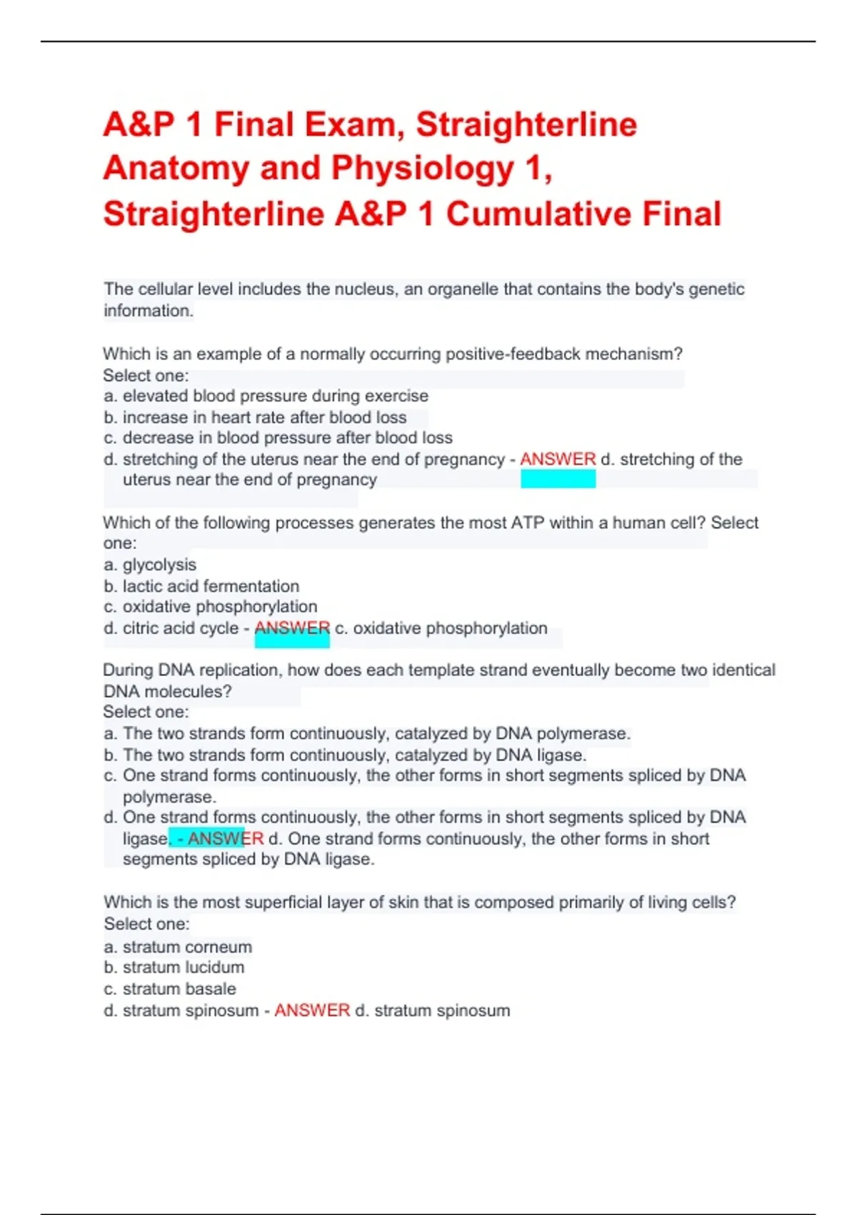 Download the complete Straighterline A&P 1 Cumulative Final Exam with verified answers. Perfect for college anatomy students, nursing programs, and self-study review. Straighterline anatomy, A&P 1 exam, college final exam, anatomy study guide, physiology test, nursing school prep, PDF exam questions, cumulative final, biology test bank, study materials
