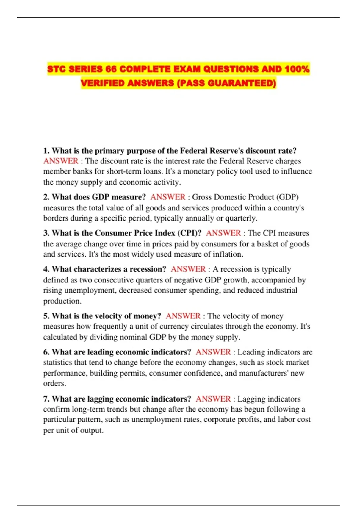STC SERIES 66 COMPLETE EXAM QUESTIONS AND 100% VERIFIED ANSWERS (PASS GUARANTEED)....