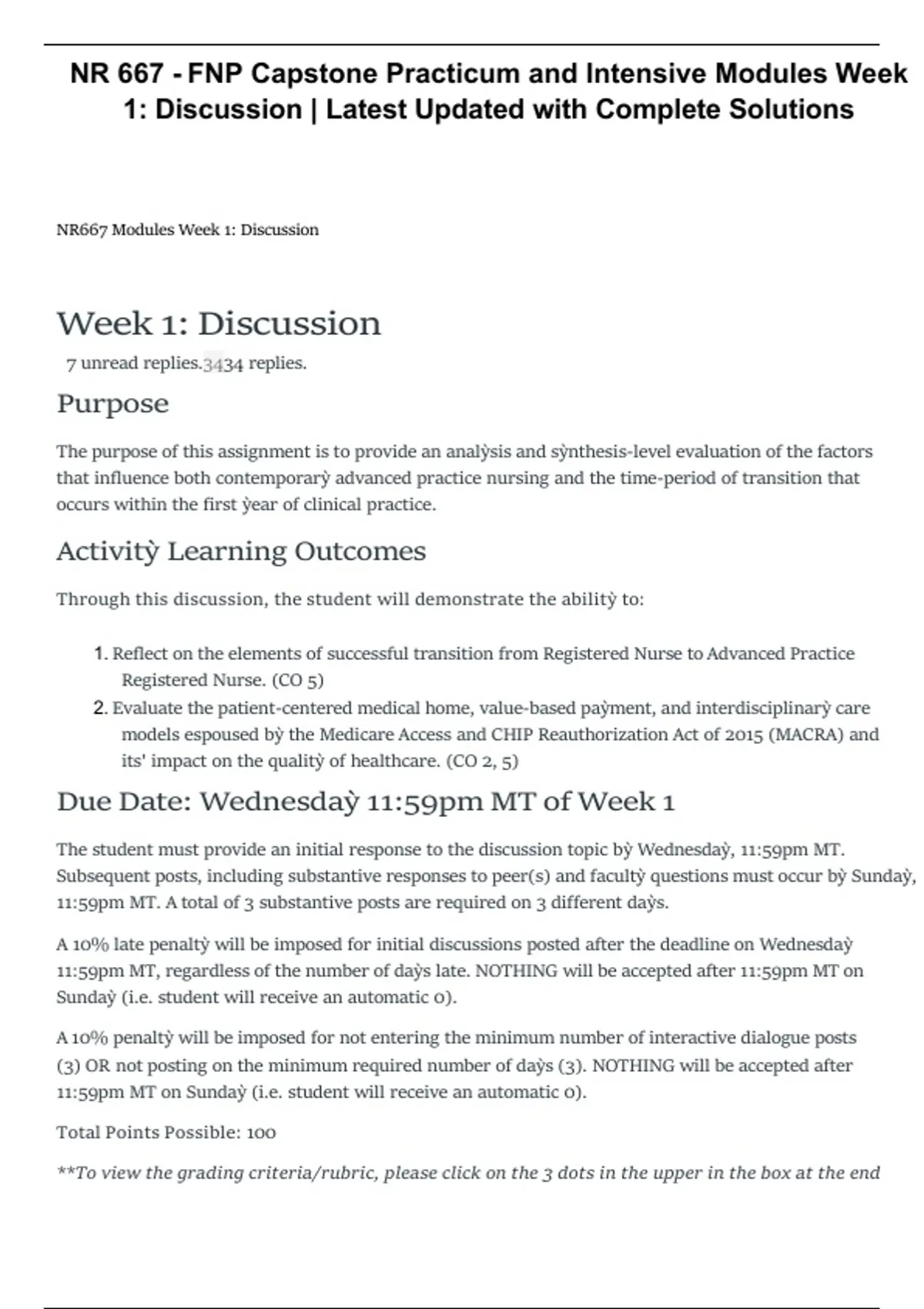 The student must provide an initial response to the discussion topic bỳ Wednesdaỳ, 11:59pm MT.