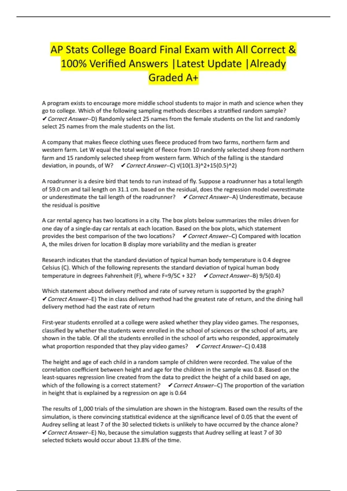 100% Verified Answers |Latest Update |Already