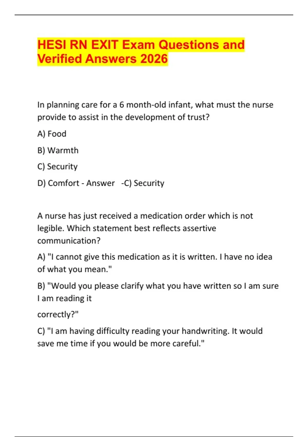 HESI RN EXIT Exam Questions and