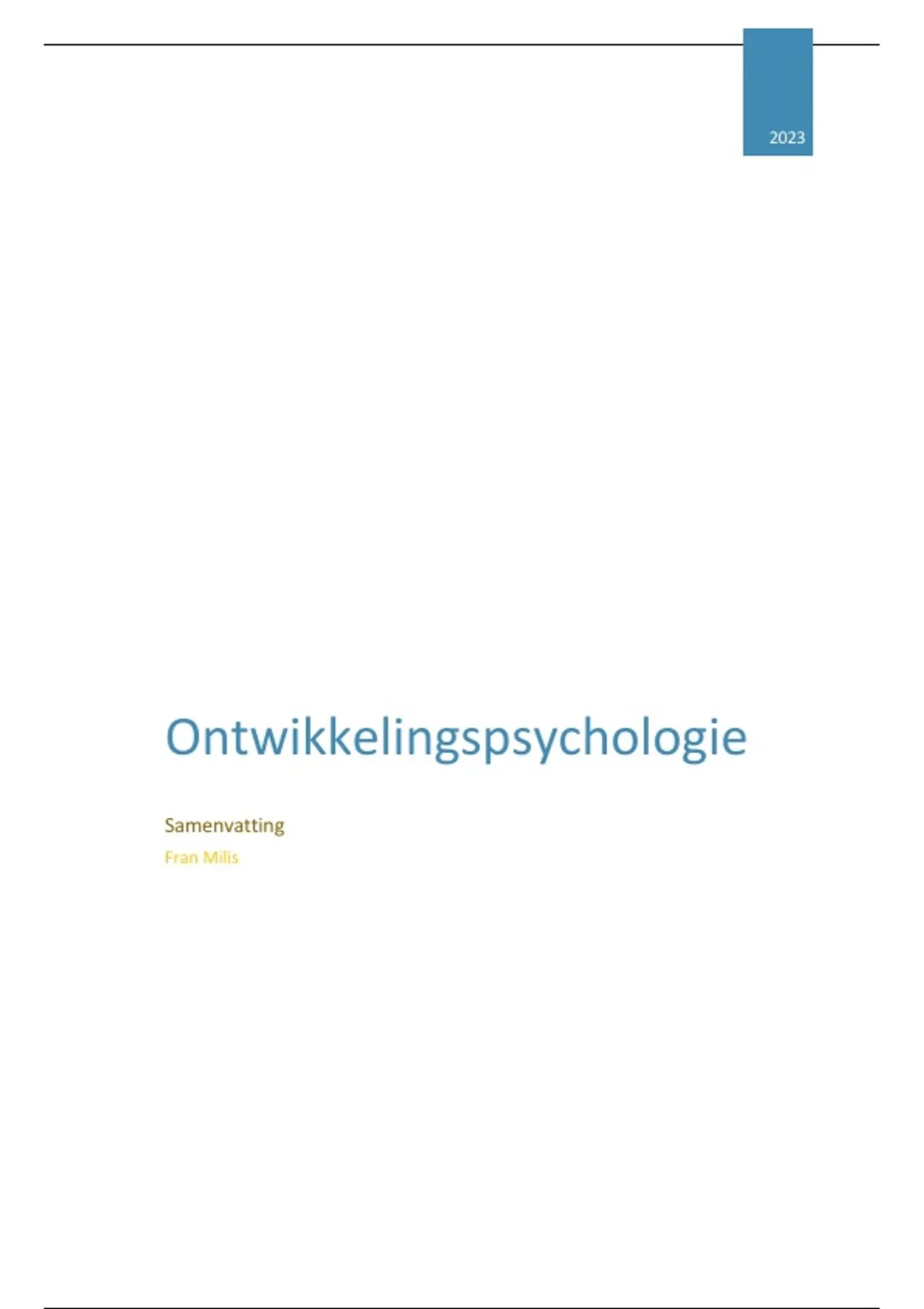 Samenvatting - Ontwikkelingspsychologie (H001386A)