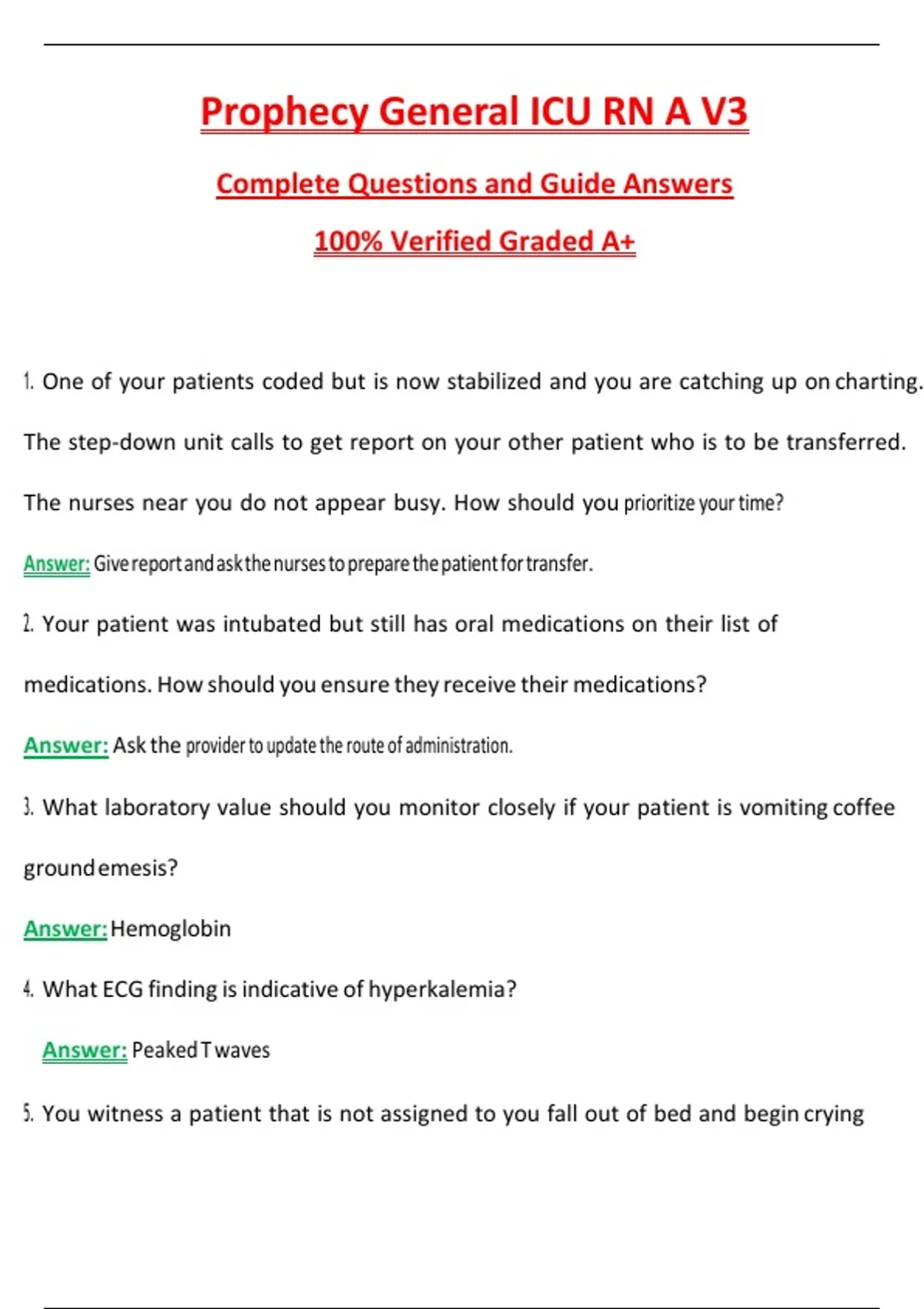 5. You witness a patient that is not assigned to you fall out of bed and begin crying
