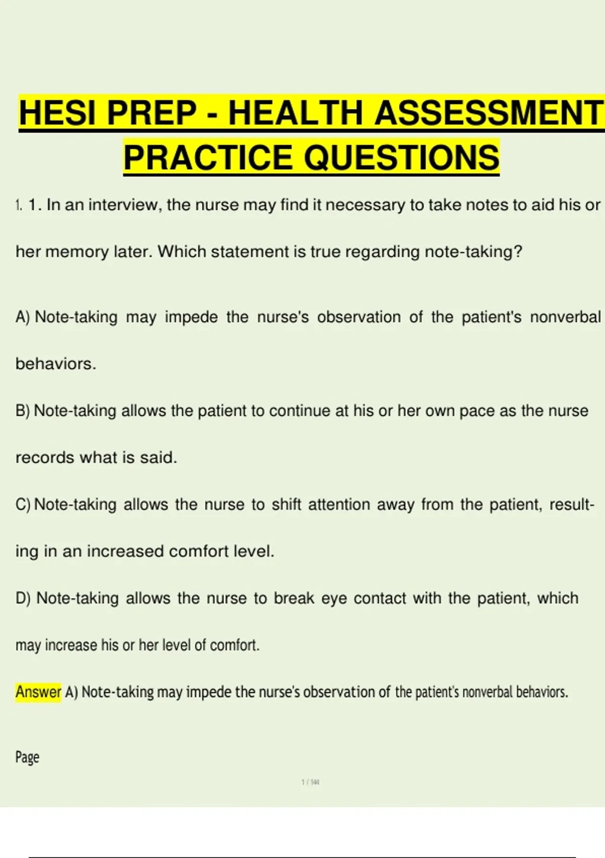 1. 1. In an interview, the nurse may find it necessary to take notes to aid his or