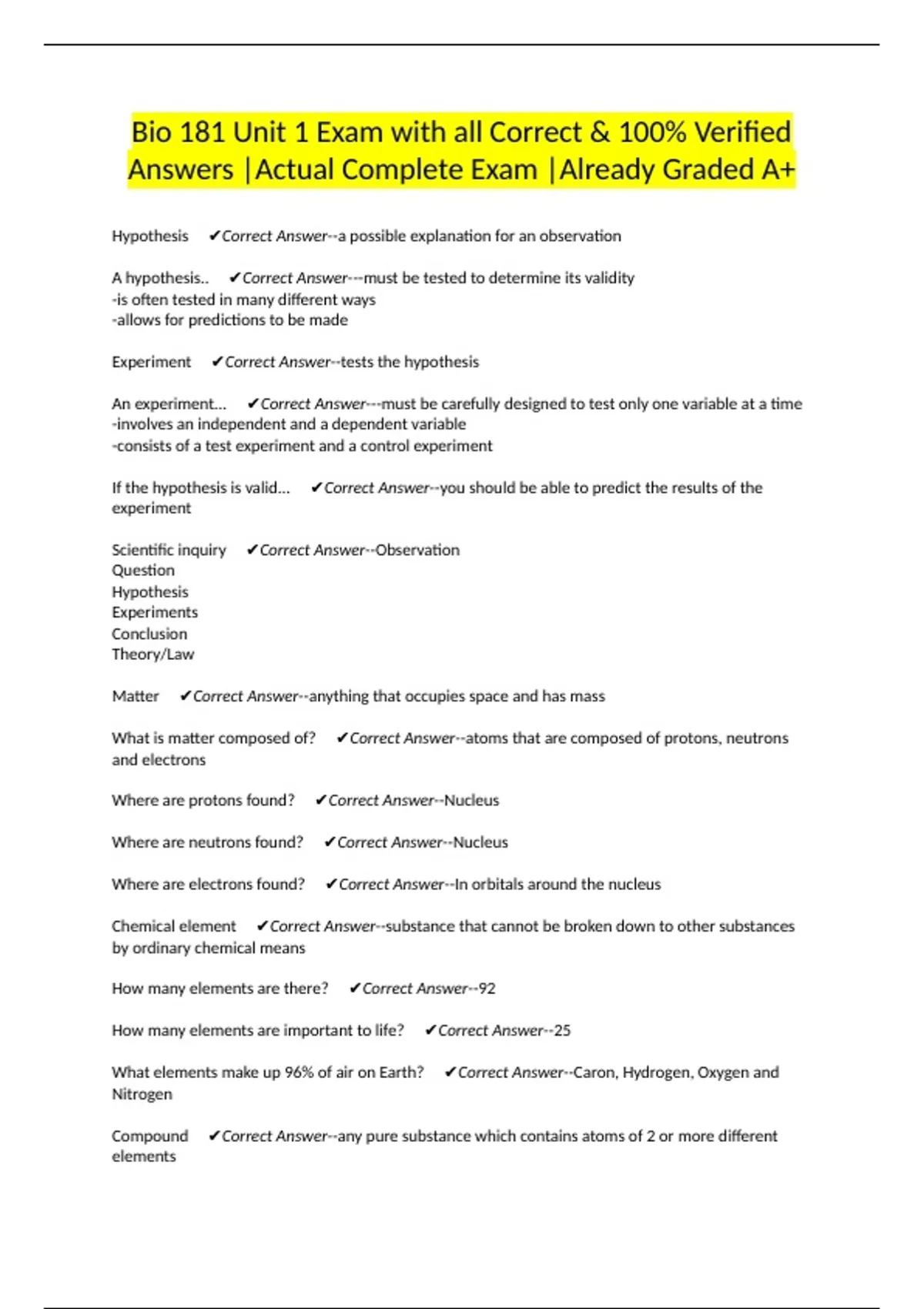 Matter ✔Correct Answer--anything that occupies space and has mass