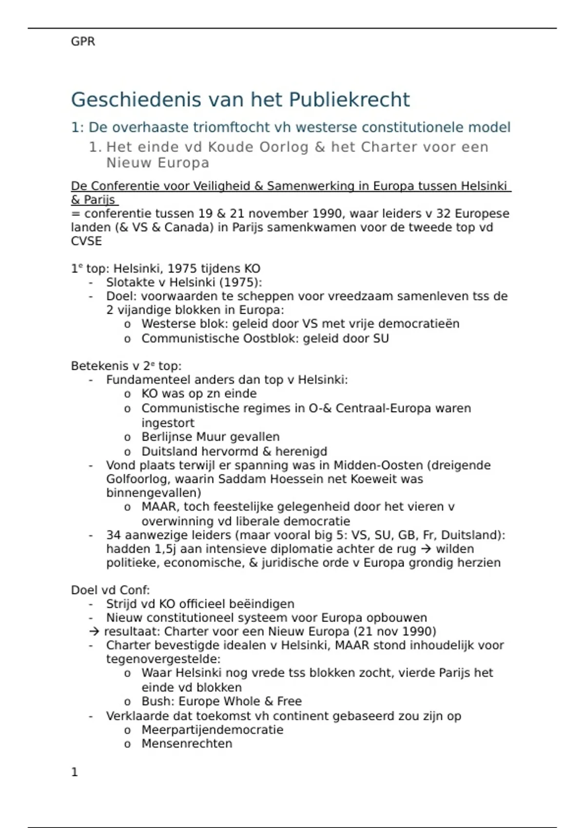 1. Het einde vd Koude Oorlog & het Charter voor een