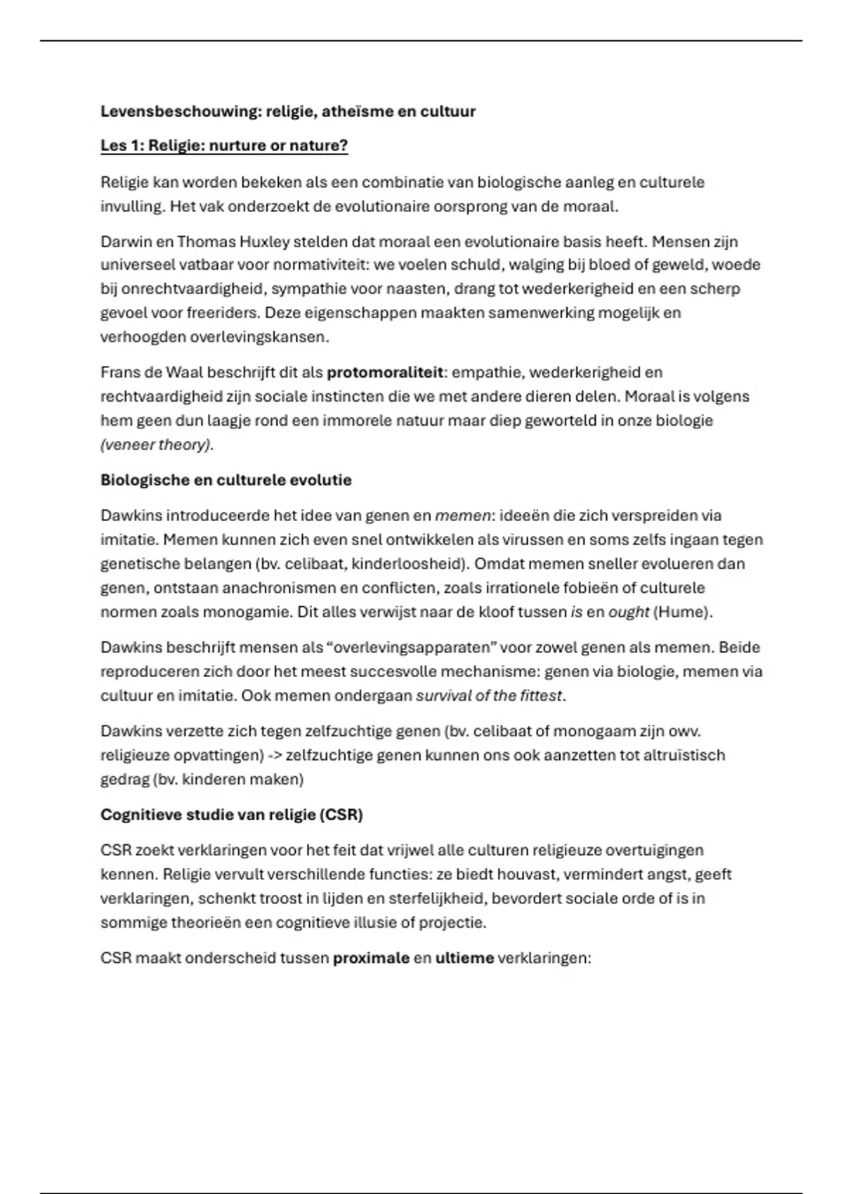 invulling. Het vak onderzoekt de evolutionaire oorsprong van de moraal.