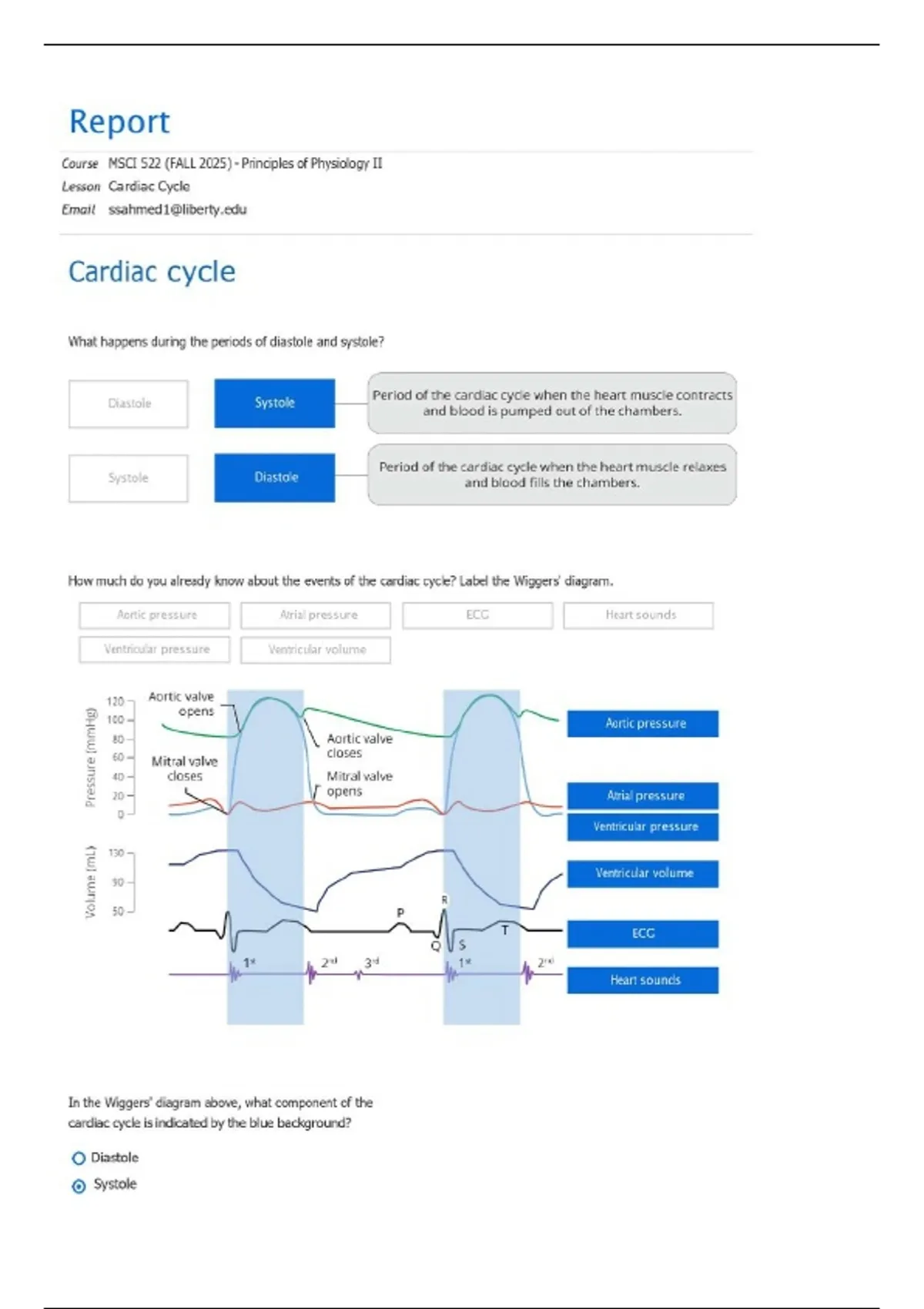 MSCI 522 Cardiac Cycle report | Questions and Answers | Fall 2025/2026 Update | 100% Correct.