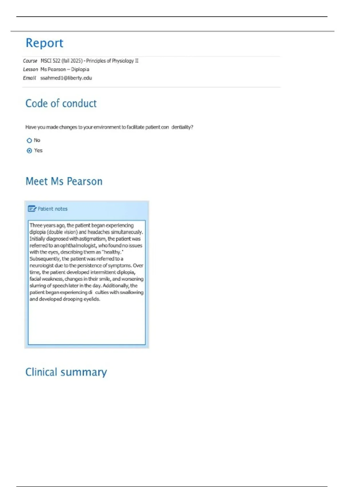 MSCI 522 Ms Pearson – Diplopia report | Fall 2025/26 Update with complete solutions.