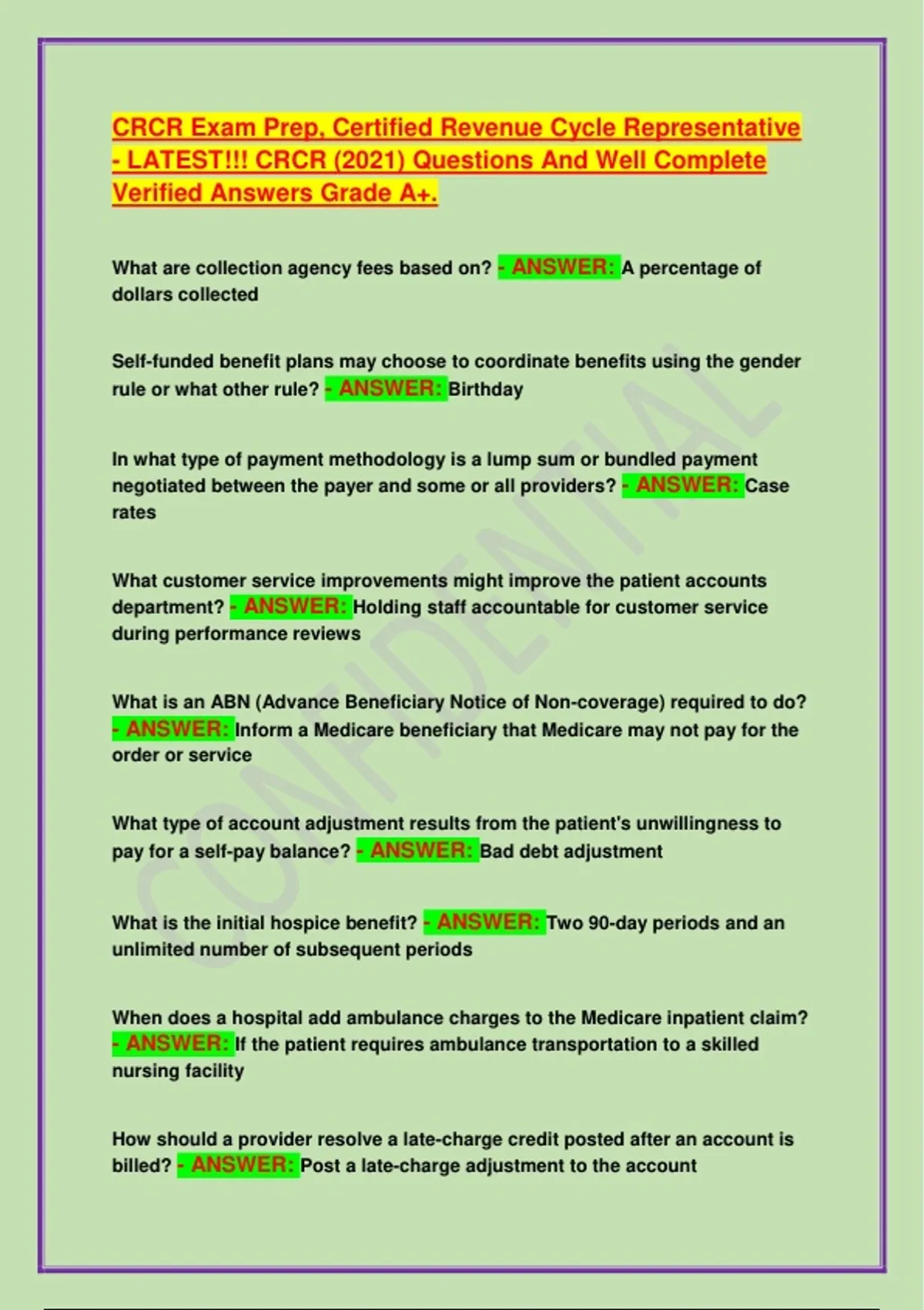 CRCR Exam Prep, Certified Revenue Cycle Representative