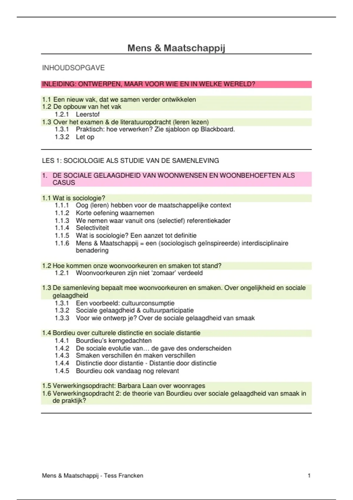 Deze overzichtelijke en gestructureerde samenvatting behandelt alle belangrijke leerstof van het vak mens en maatschappij, gegeven in de opleiding interieurarchitectuur. De inhoud is duidelijk uitgelegd in eenvoudige taal, met focus op begrip en efficiënt studeren. De samenvatting is ideaal voor: - studenten die snel een duidelijk overzicht willen - herhaling voor het examen of herexamen - studenten die moeite hebben om de leerstof te structureren Inhoud: - kernbegrippen en definities - overzichtelijke schema’s en samenvattingen - logische opbouw volgens de lessen / cursus - duidelijke uitleg zonder overbodige informatie Deze samenvatting helpt je om gericht te studeren, hoofd- en bijzaken te onderscheiden en met meer vertrouwen naar het examen te gaan.