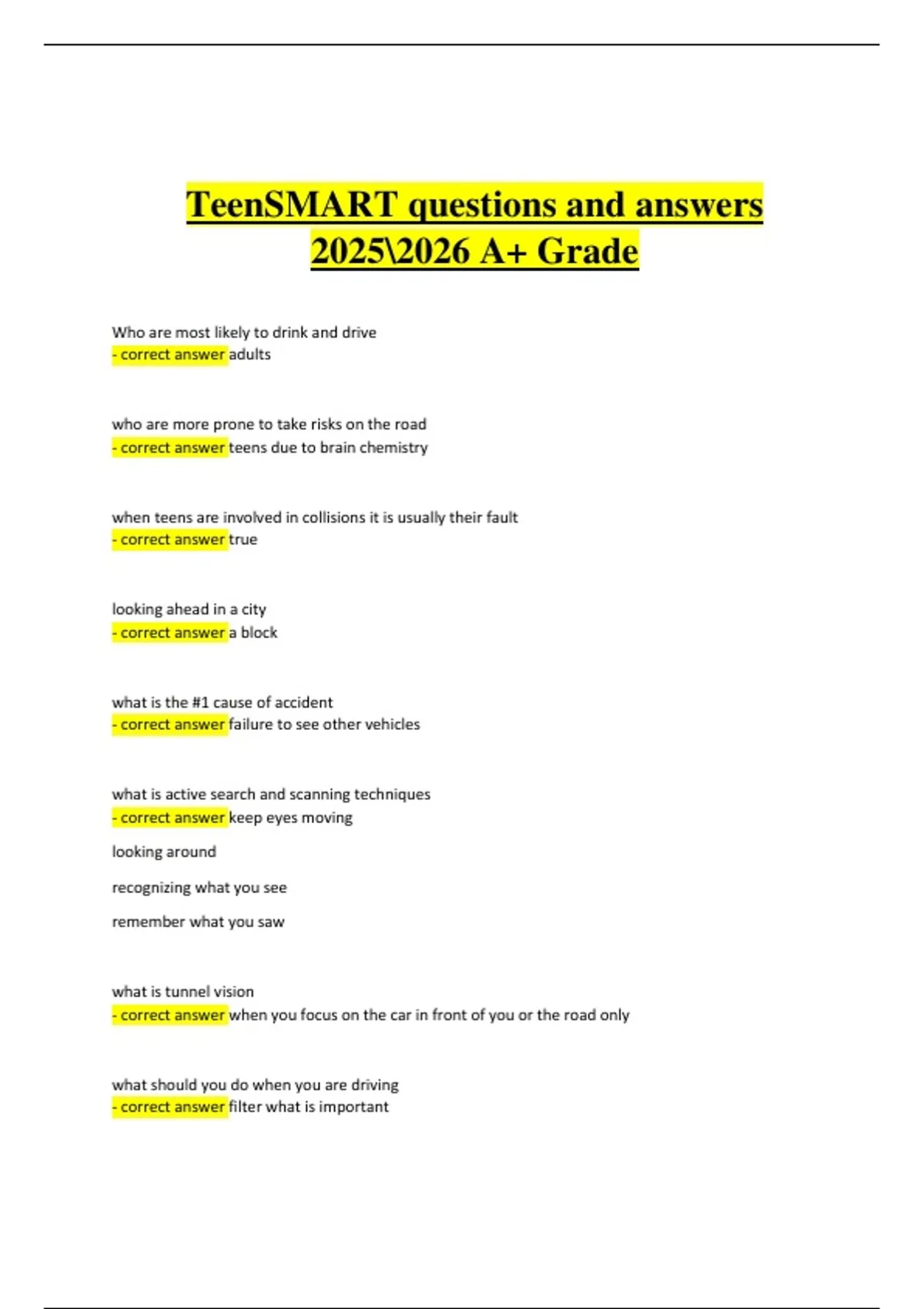 - correct answer when you focus on the car in front of you or the road only