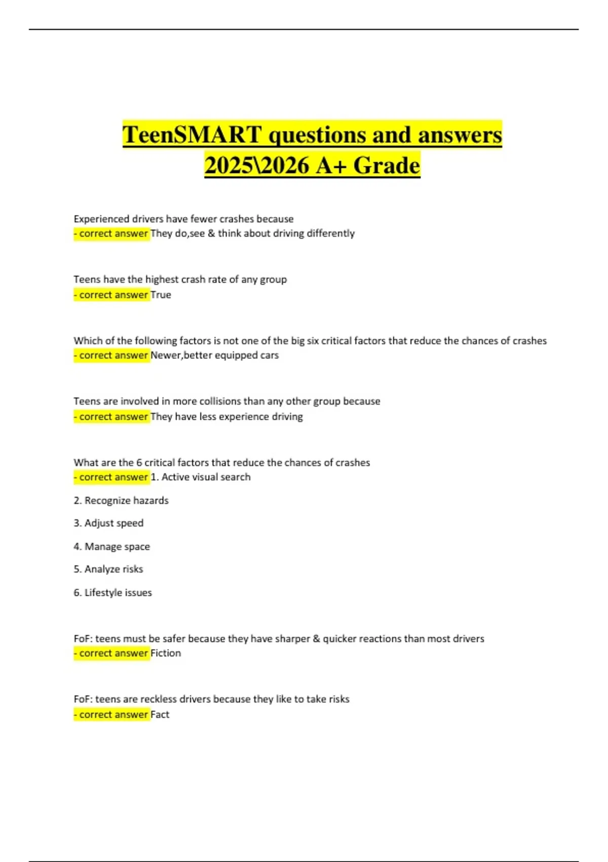 FoF: teens must be safer because they have sharper & quicker reactions than most drivers