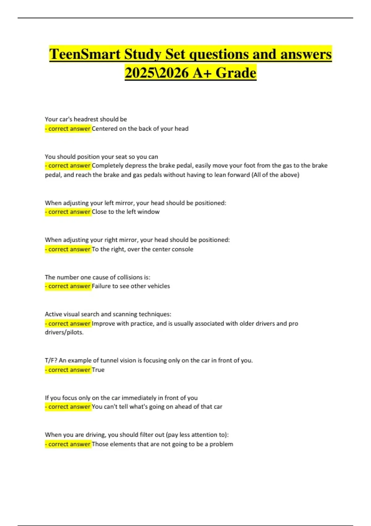 - correct answer Failure to see other vehicles
