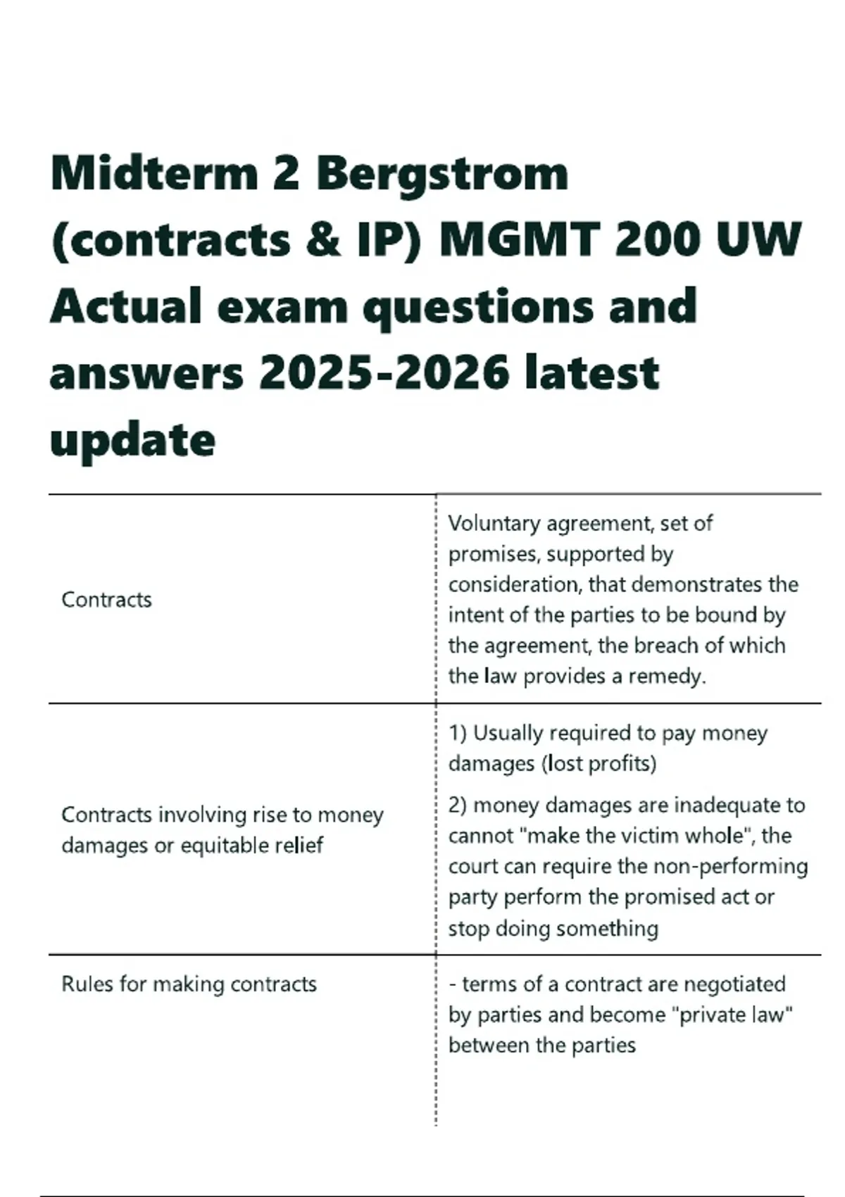 Midterm 2 Bergstrom (contracts & IP) MGMT 200 UW Actual exam questions and answers