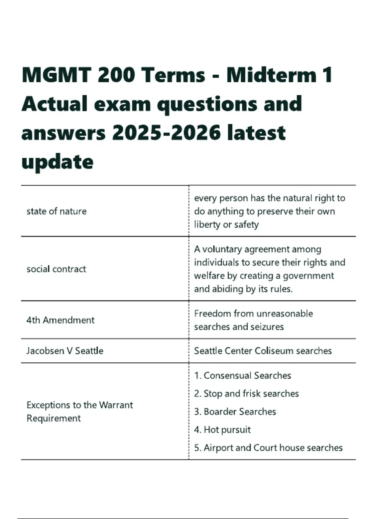 MGMT 200 Terms - Midterm 1 Actual exam questions and answers latest update.