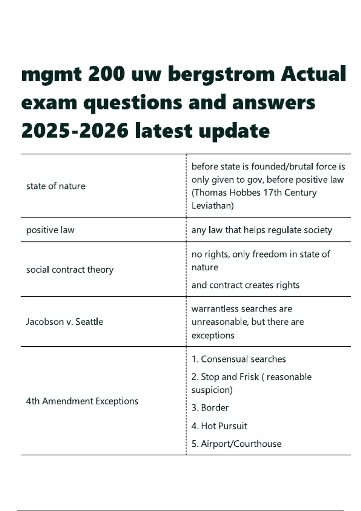 mgmt 200 uw bergstrom Actual exam questions and answers latest update.