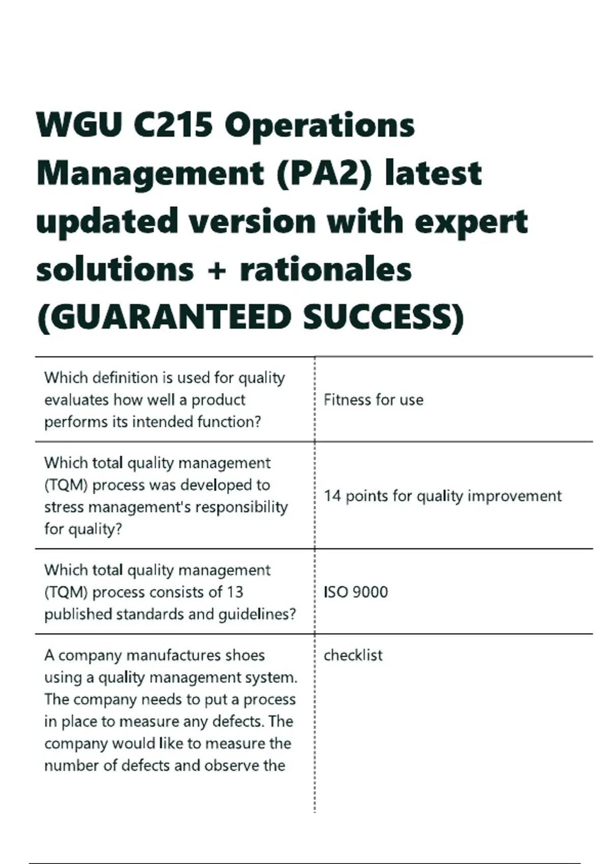 WGU C215 Operations Management (PA2) latest updated version with expert solutions + rationales