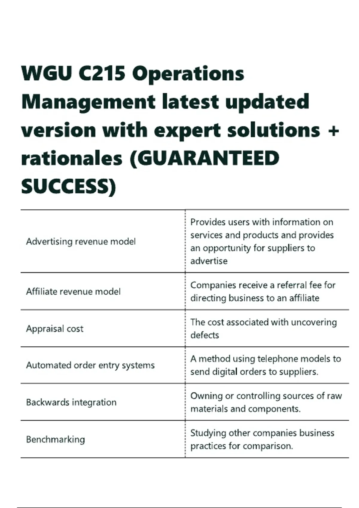 WGU C215 Operations Management latest updated version with expert solutions + rationales