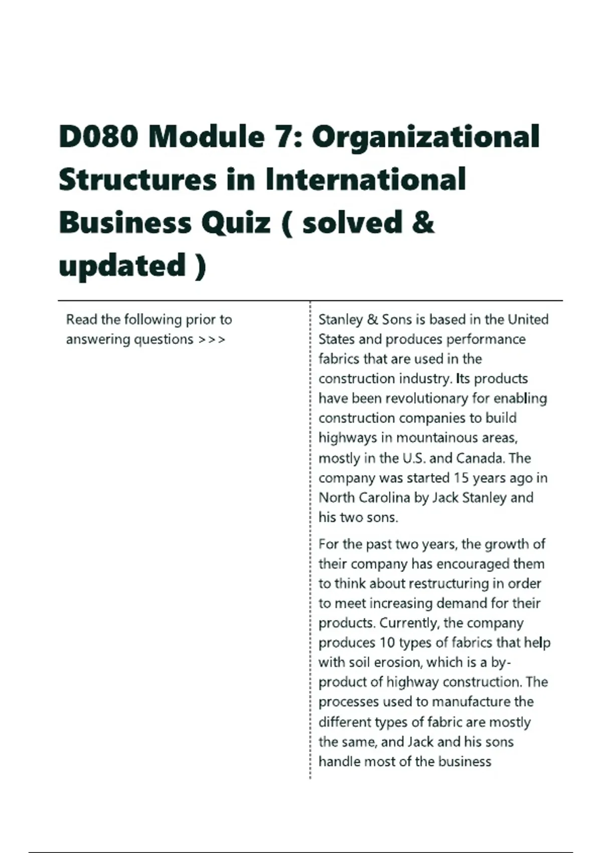 D080 Module 7 Organizational Structures in International Business Quiz ( solved & updated )