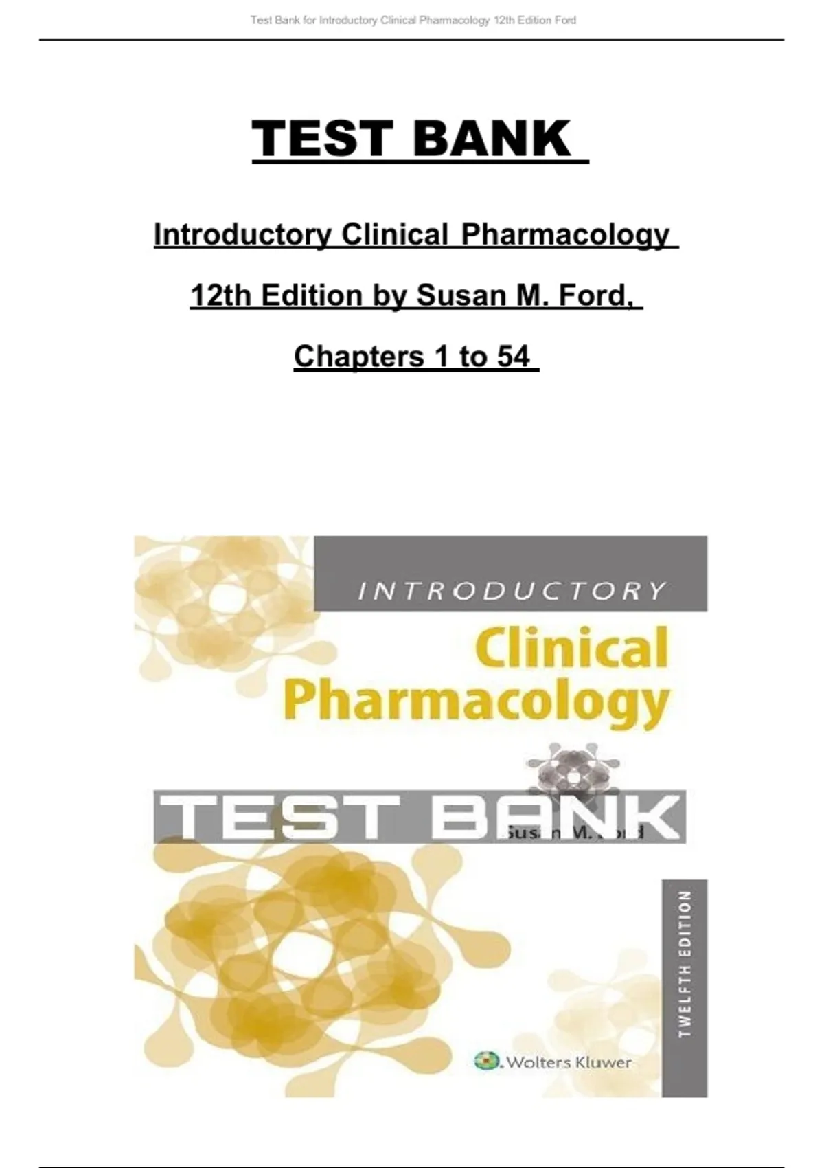 , Test Bank for Introductory Clinical Pharmacology 12th Edition Ford