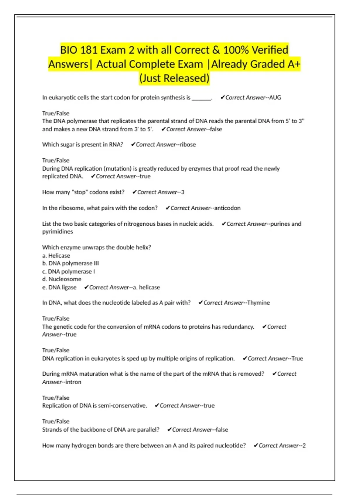 replicated DNA. ✔Correct Answer--true