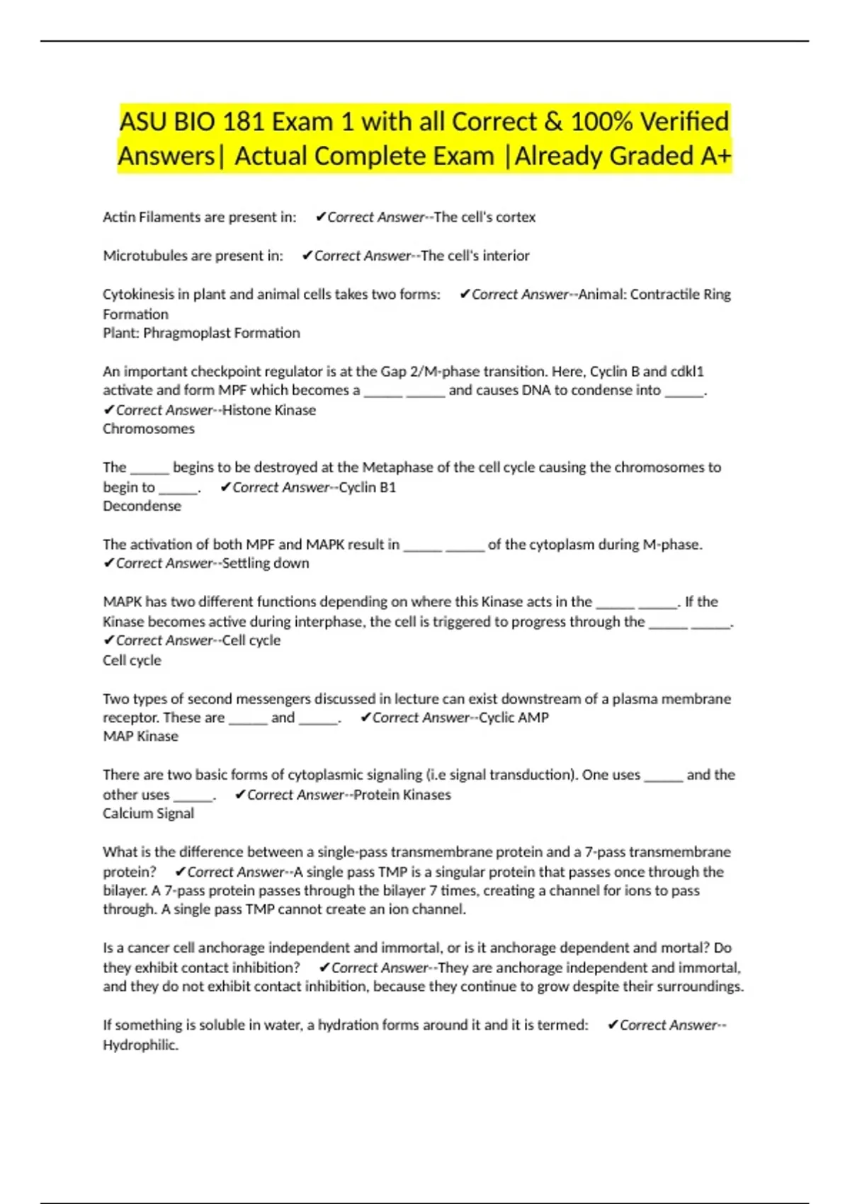 begin to _____. ✔Correct Answer--Cyclin B1