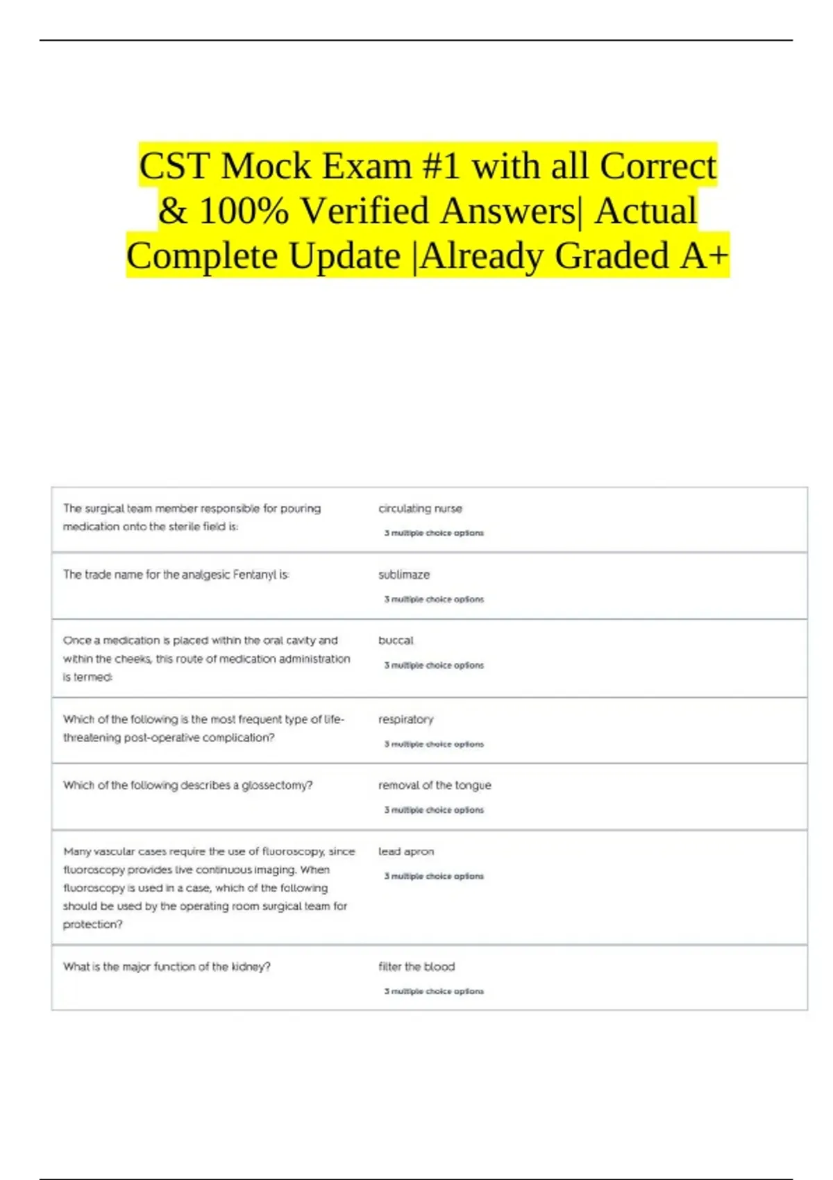 CST Mock Exam #1 with all Correct & 100% Verified Answers| Actual Complete Update |Already Graded A+