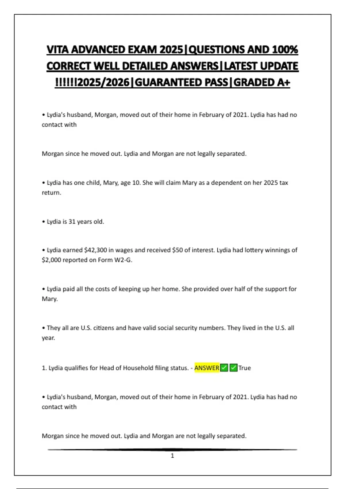 VITA ADVANCED EXAM 2025|QUESTIONS AND 100% CORRECT WELL DETAILED ANSWERS|LATEST UPDATE !!!!!!2025/2026|GUARANTEED PASS|GRADED A+