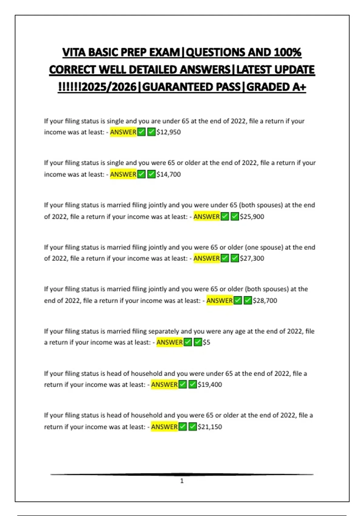 of 2022, file a return if your income was at least: - ANSWER $25,900