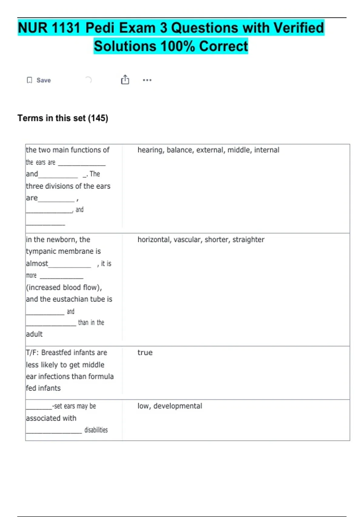 NUR 1131 Pedi Exam 3 Questions with Verified