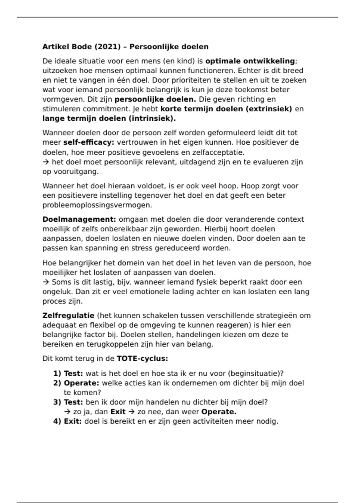 belangrijke factor bij. Doelen stellen, handelingen kiezen om deze te