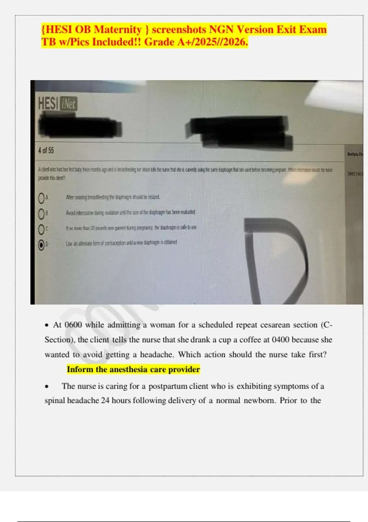 ,{HESI OB Maternity } screenshots NGN Version Exit Exam