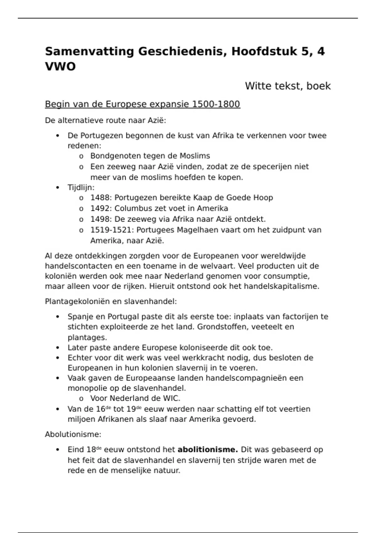 Begin van de Europese expansie 1500-1800